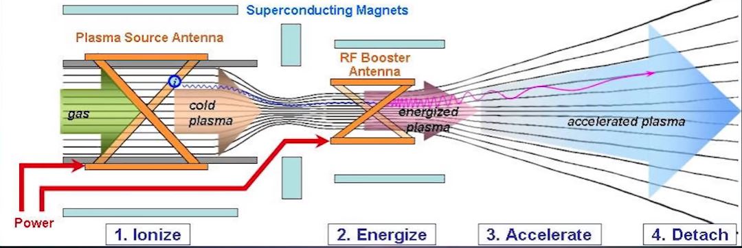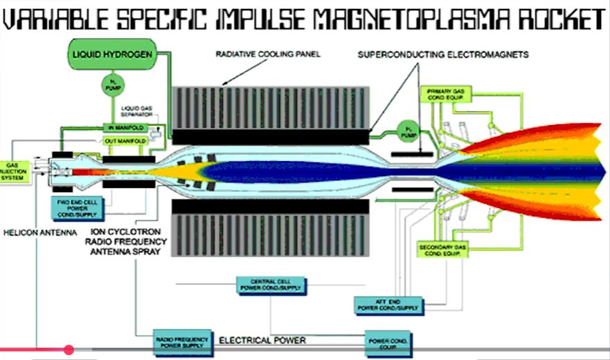 The system is rather easy to understand too. The most notorious and total difference between a terrestrial plasma engine and that of Taygeta is that the terrestrial one still needs a propellant or fuel. The hot combustion gas between the liquid oxygen oxidant and the hydrogen propellant fuel passes through a series of very powerful electromagnets that basically order the molecules of the expanding gases, creating not only more complete combustion, but also greater efficiency in the exit order of the molecules of the hot exiting combustion gases, thereby producing more thrust with lower fuel consumption.