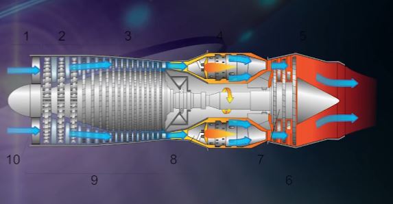 In summary, the electrical energy is generated in the reactor. It is passed through high-tech coils that greatly increase its power, and then it is injected into a series of counter-rotating turbines that distribute or convert that energy to electromagnetic plasma of computer-controlled frequencies which produce a huge thrust without the need to use any fuel or additional propellant.